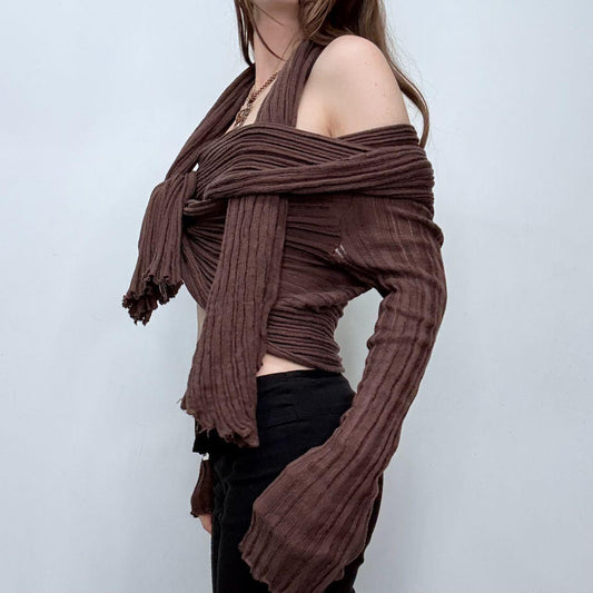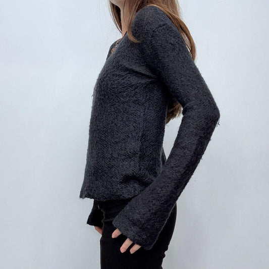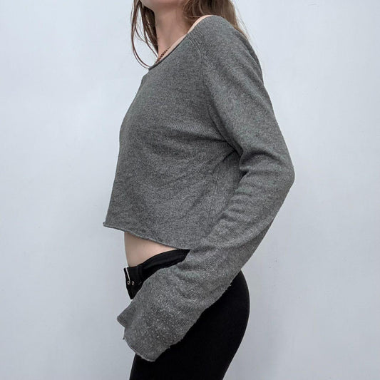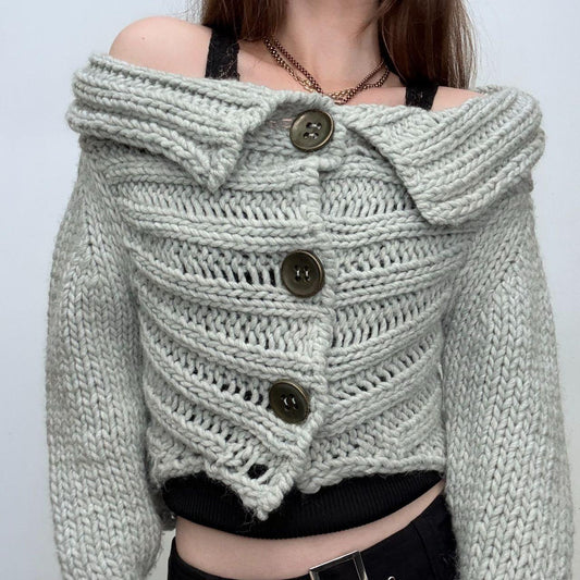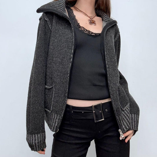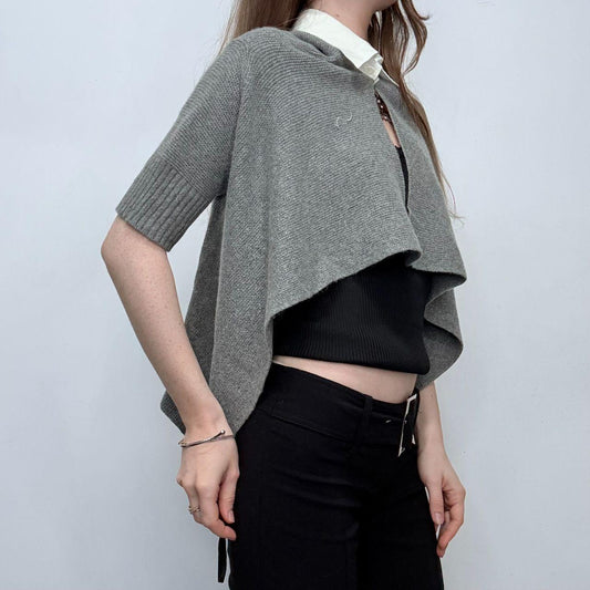Grey ribbed asymmetric flared Cop Copine cardigan