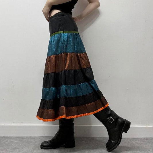 Metallic tiered hippie skirt