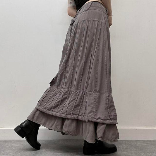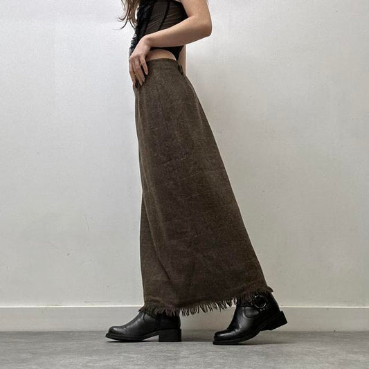 Pinstripe layered distressed maxi skirt