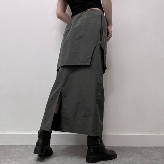 Ruched cargo maxi skirt