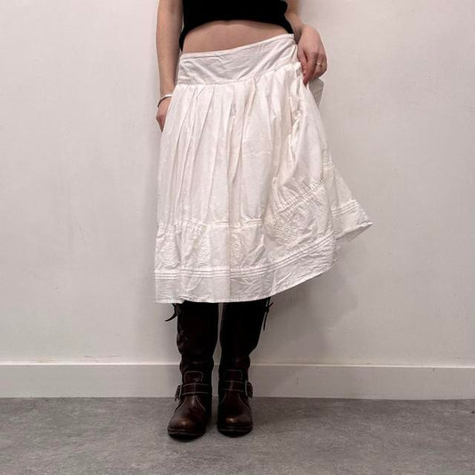 White cotton tiered embroidered maxi skirt