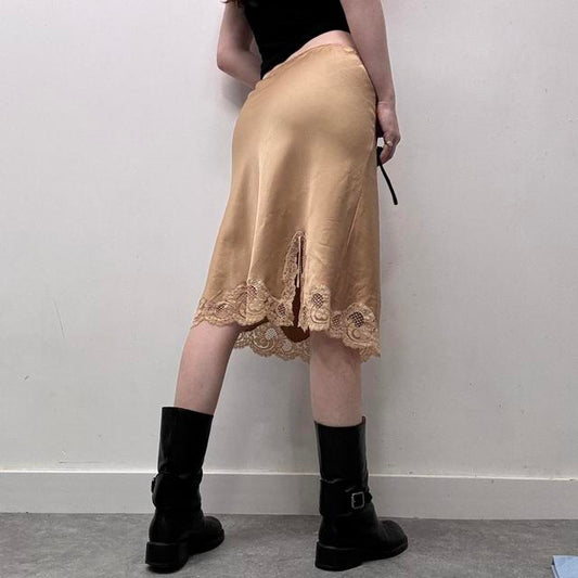 Silk bias cut 90s lace skirt