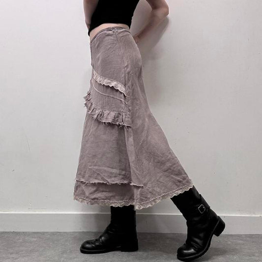 Sold outLace linen distressed skirt