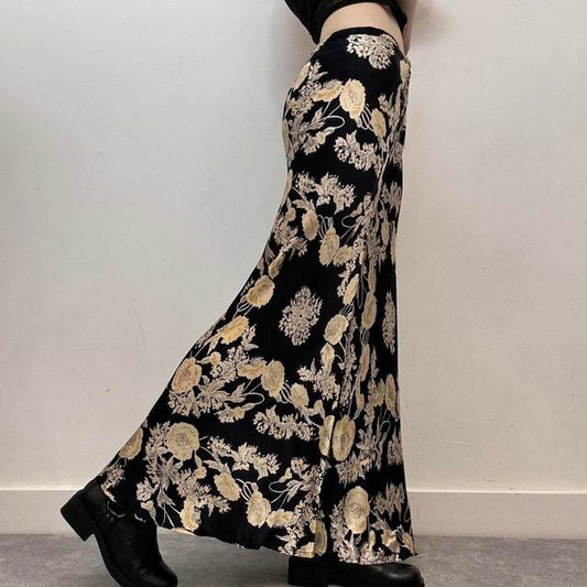 Maxi floral bias satin summer skirt
