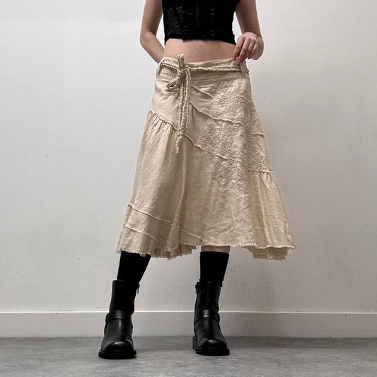 Linen distressed lace skirt