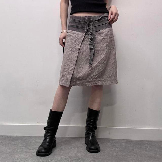 Crinkle buckle cross over wrap midi skirt
