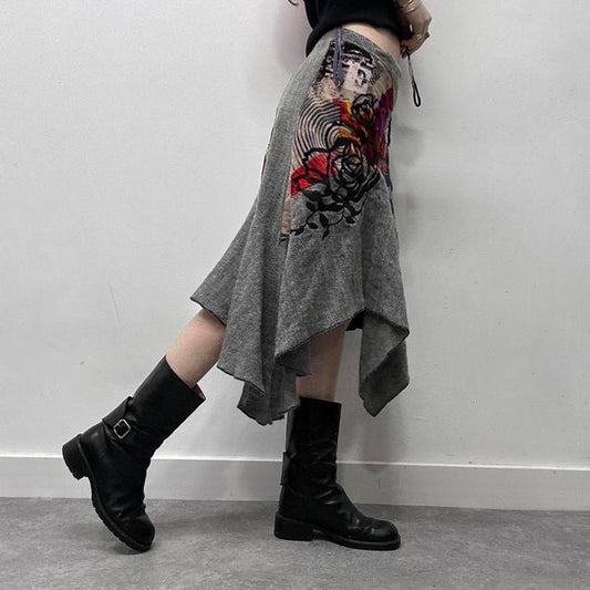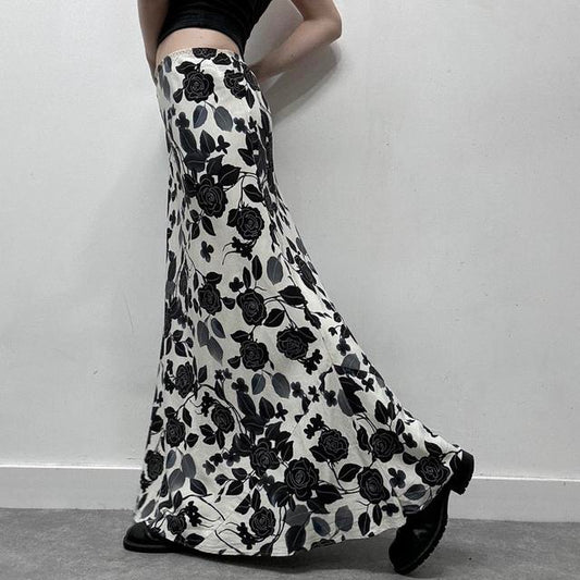 Grey graphic floral maxi skirt