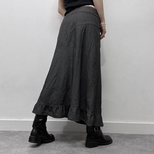 Sold outGrey asymmetric button ruffle skirt