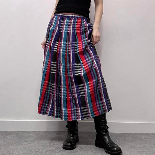 Checked tartan pleated maxi skirt