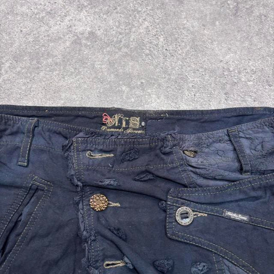 Distressed patchwork asymmetric skirt