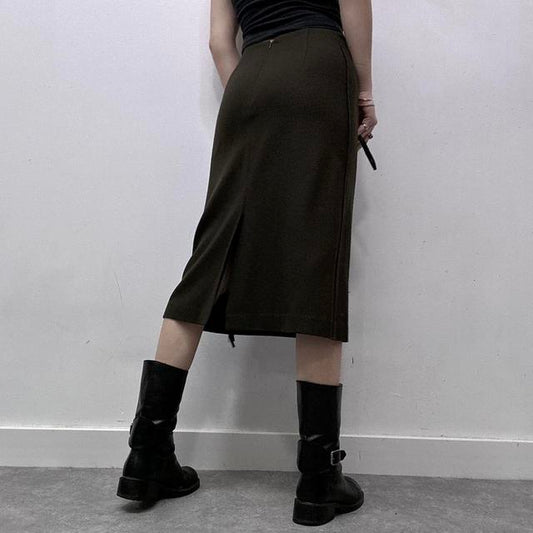 Khaki cargo zipper midi skirt