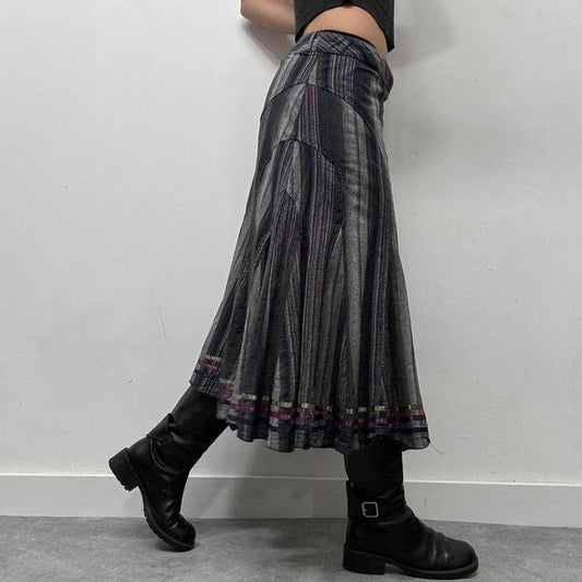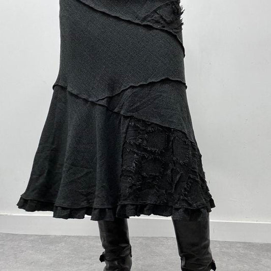 Flared grey tweed archival asymmetric midi skirt