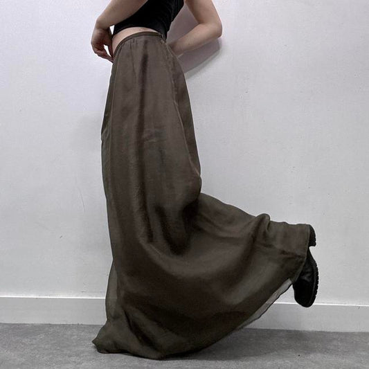 Khaki green sheer layered silk maxi skirt