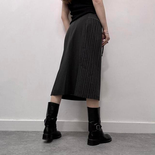 Grey pinstripe office skirt