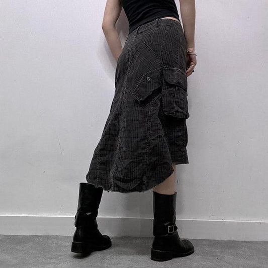 Checked brown cargo asymmetric skirt