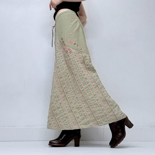 Green and pink asymmetric pinstripe a-line skirt