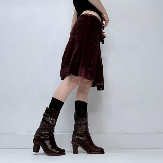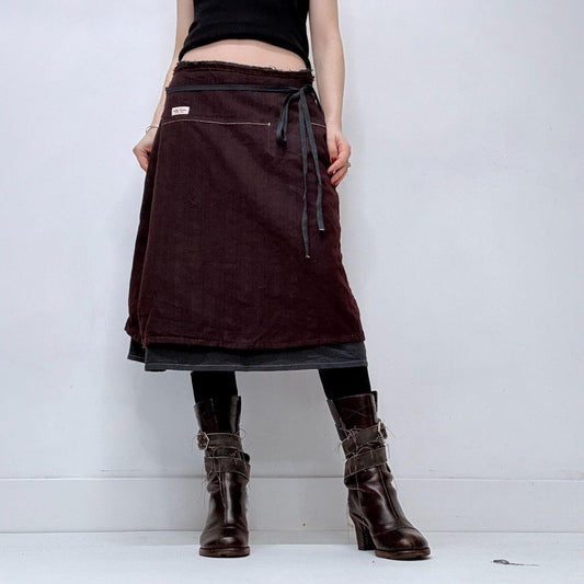 Burgandy wrap-over layered midi skirt