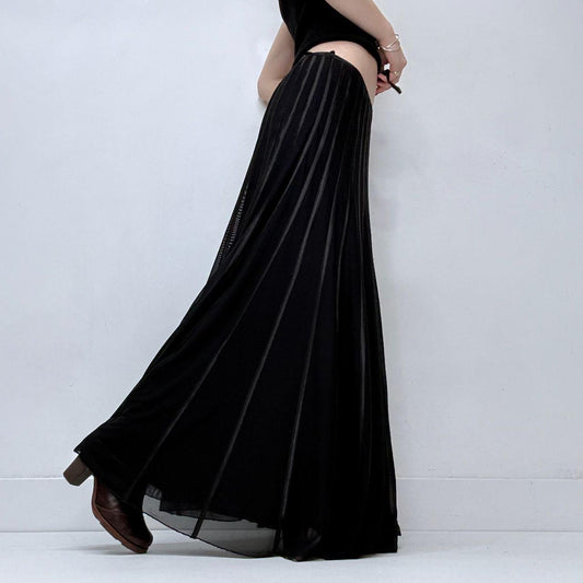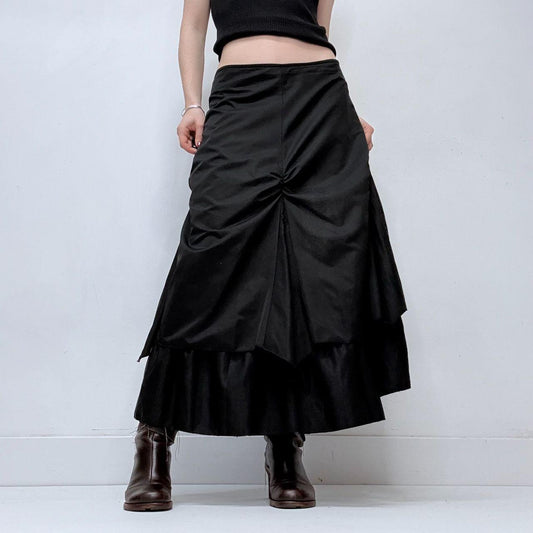 Black gathered pleated maxi skirt