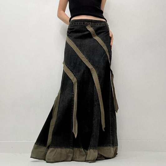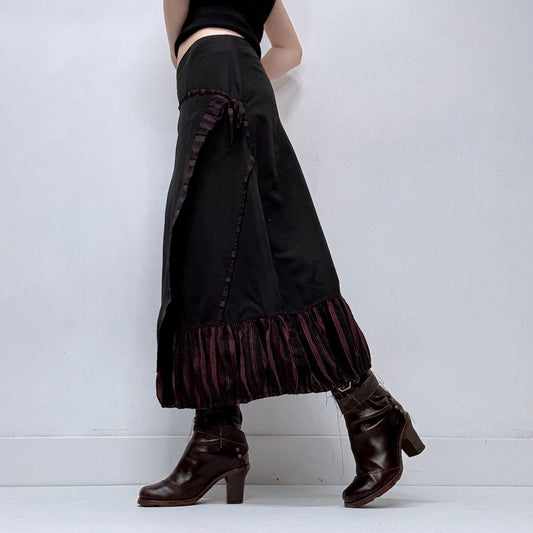 Black ribbon striped flared grunge skirt