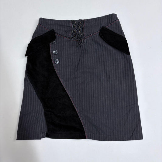 Pinstripe asymmetric button corset skirt