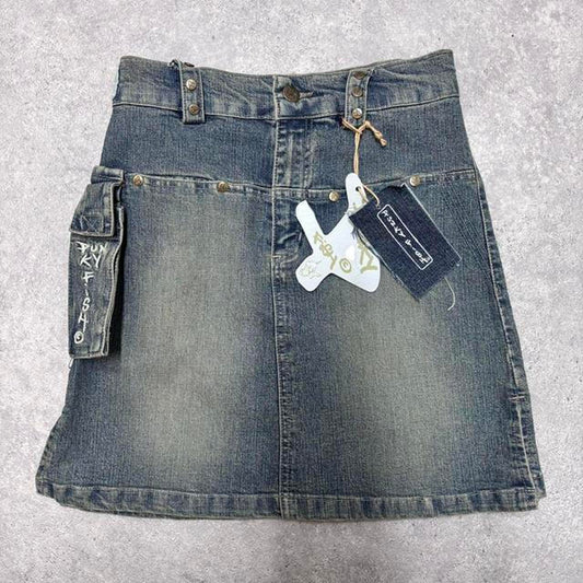 Mini cargo denim skirt