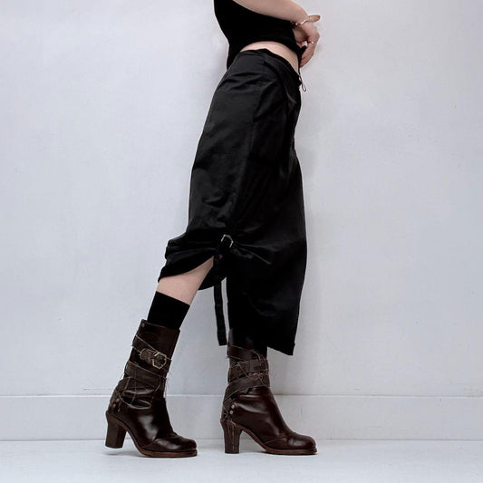 Black cinch grunge midi skirt