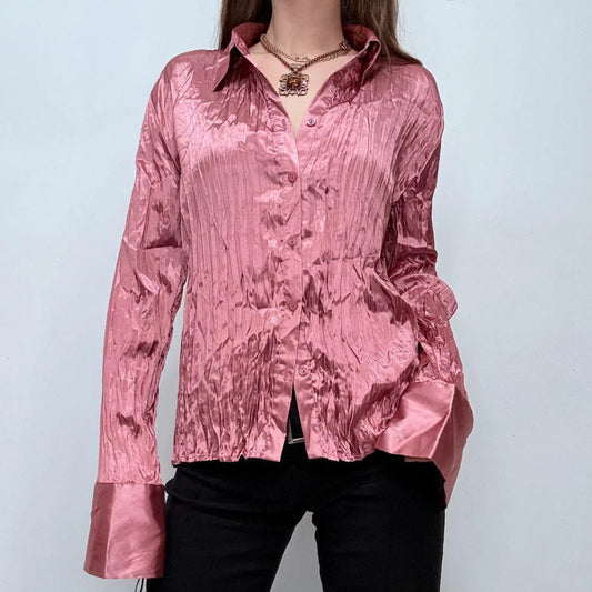 pink silky satin wrap button shirt