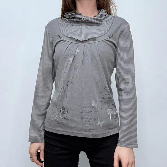 grey long sleeve pinstriped t-shirt