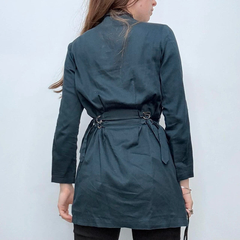 Vintage navy d ring cinched waist eyelet popper neckline, gothic grunge long high-waistline shirt