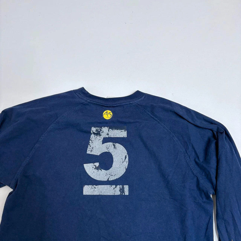 Vintage The north face A series Oversized navy graphic printed sweater, slouchy blue minimalist sweatshirt T-shirt, distressed text letter a printed utility top.