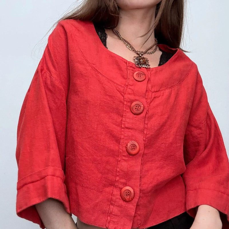 red slouchy oversized linen shirt