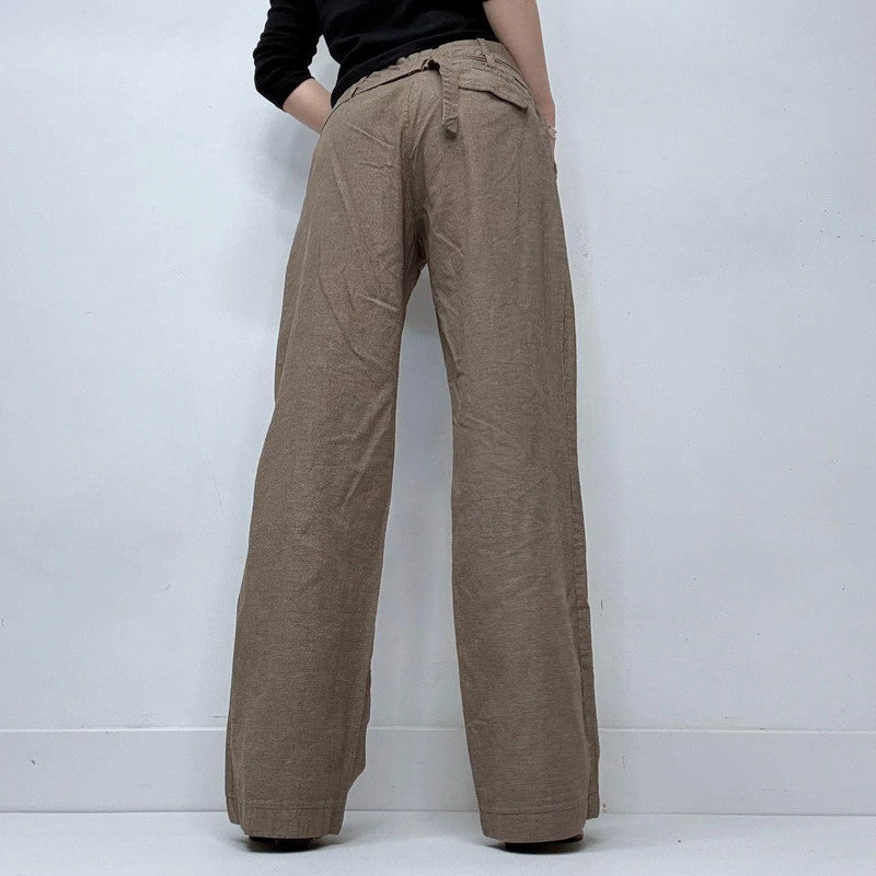 Vintage twee cotton cargo utility grunge style chino flare wide-leg cotton pants
